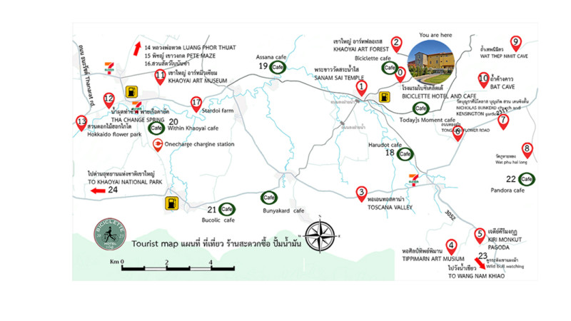 Biciclette Cafe Khaoyai ในบริเวณโรงแรม ท่ามกลางบรรยากาศเขียวขจีของสวนทัสคานี โดยมีวิวอุทยานแห่งชาติเขาใหญ่เป็น แบคดรอบ โดดเด่นด้วยสถ...